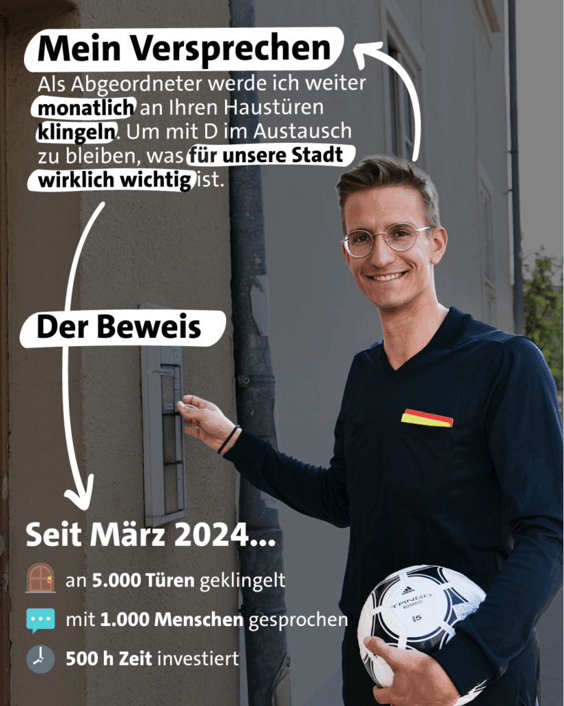 Schenken Sie mir Ihr Vertrauen, mache ich weiter. Jeden Monat werde ich als Abgeordneter weiter an Ihren Türen klingeln und Ihnen zuhören. Versprochen.